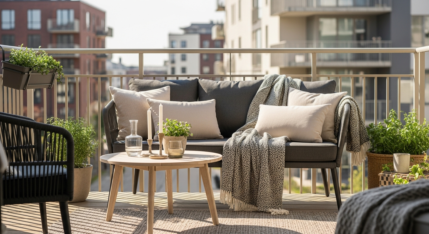 Mēbeles maziem balkoniem un plašām atpūtas zonām